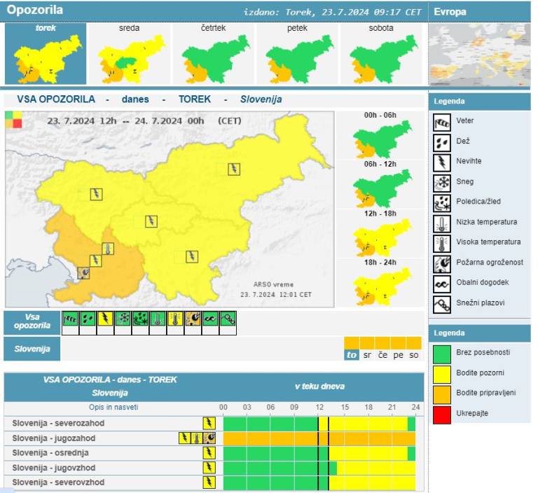 »Predvsem na severozahodu se bodo začele pojavljale plohe in nevihte, ki se bodo združile v sistem neviht, ki se bo zvečer in v prvem delu noči širil proti vzhodu.