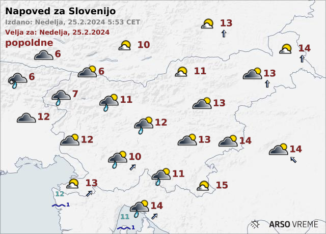 Najnižje jutranje temperature bodo od nič do pet, v alpskih dolinah in v mraziščih Notranjske okoli minus dve stopinji Celzija.