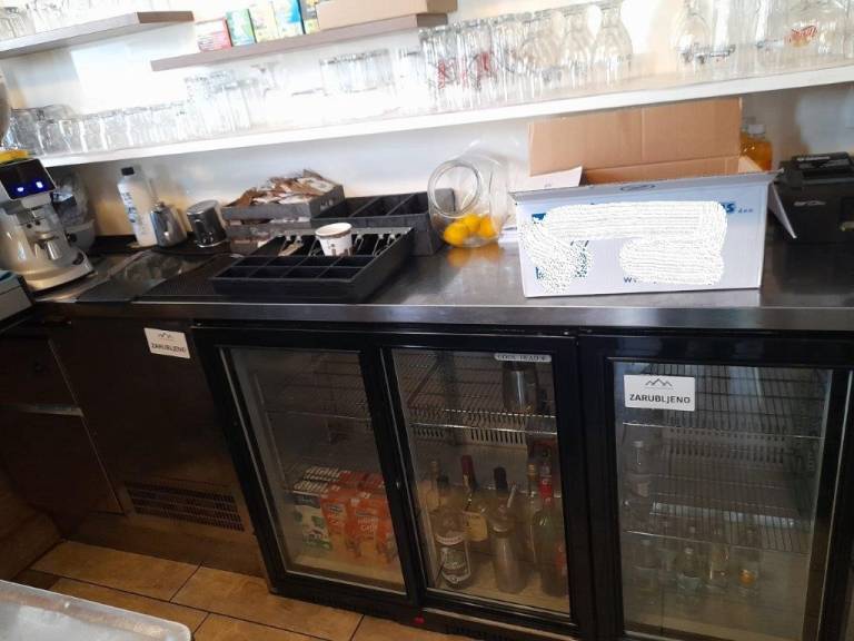 Na dražbi se bo prodajala pečica za pizzo, inox delovni pult, inox dvojno pomivalno korito, dvojni inox pult s hladilno vitrino, in ledomatom, inox delovni pult s koritom in pomivalnim strojem.