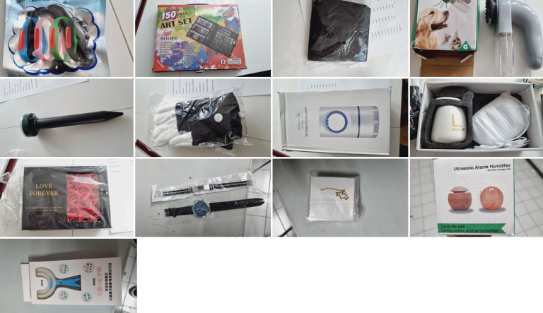 Med njimi so se znašle zapestnice proti insektom, risalni seti, pokrivala za avte, sesalci za dlake, odganjalci škodljivcev, rokavice, lovilci mrčesa, grelne šalice, darilni seti vrtnice, ročne ure, ogrlice, osvežilci zraka in zobne ščetke za otroke.