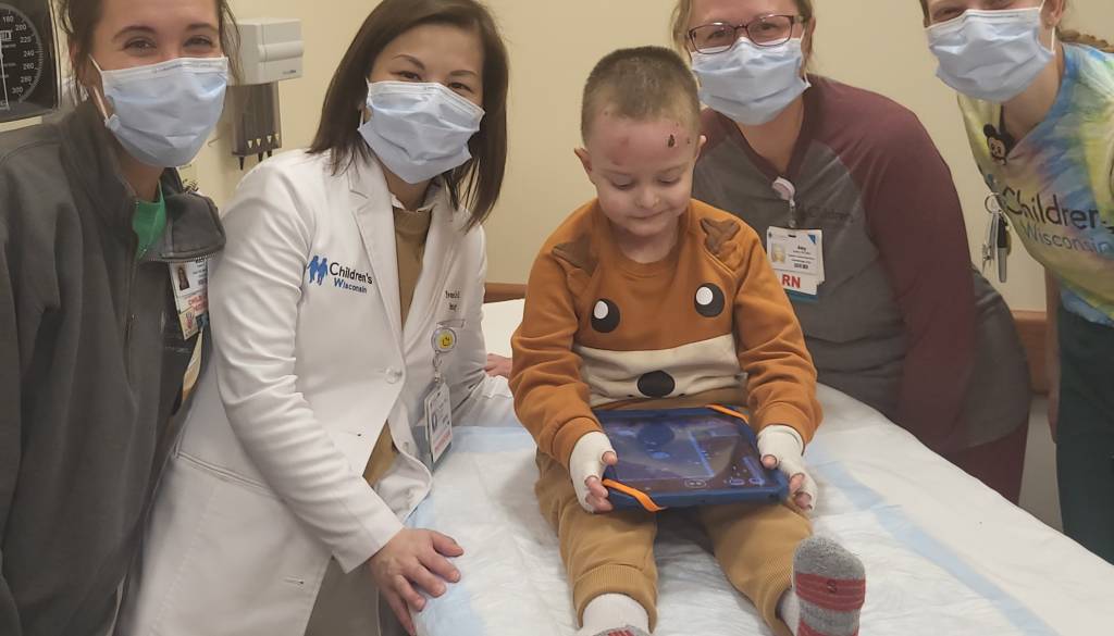 Miloš je v noči iz petka na soboto po našem času v otroški bolnišnici Children's Wisconsin prejel prvi odmerek zdravila v obliki kreme, ki so jo zdravniki nanesli na rane na nogi.