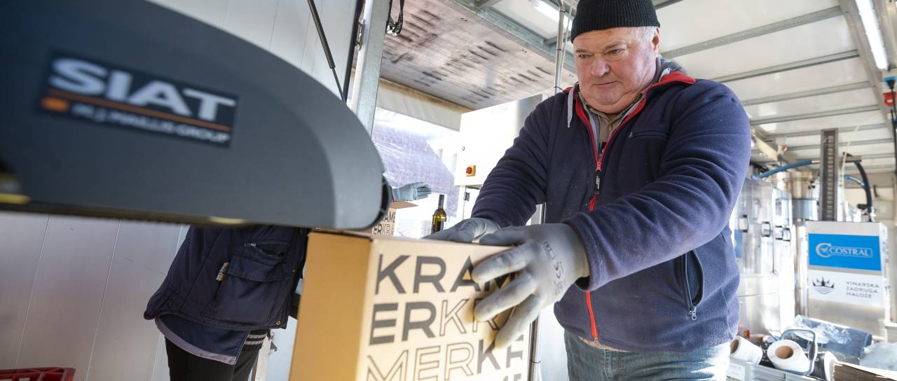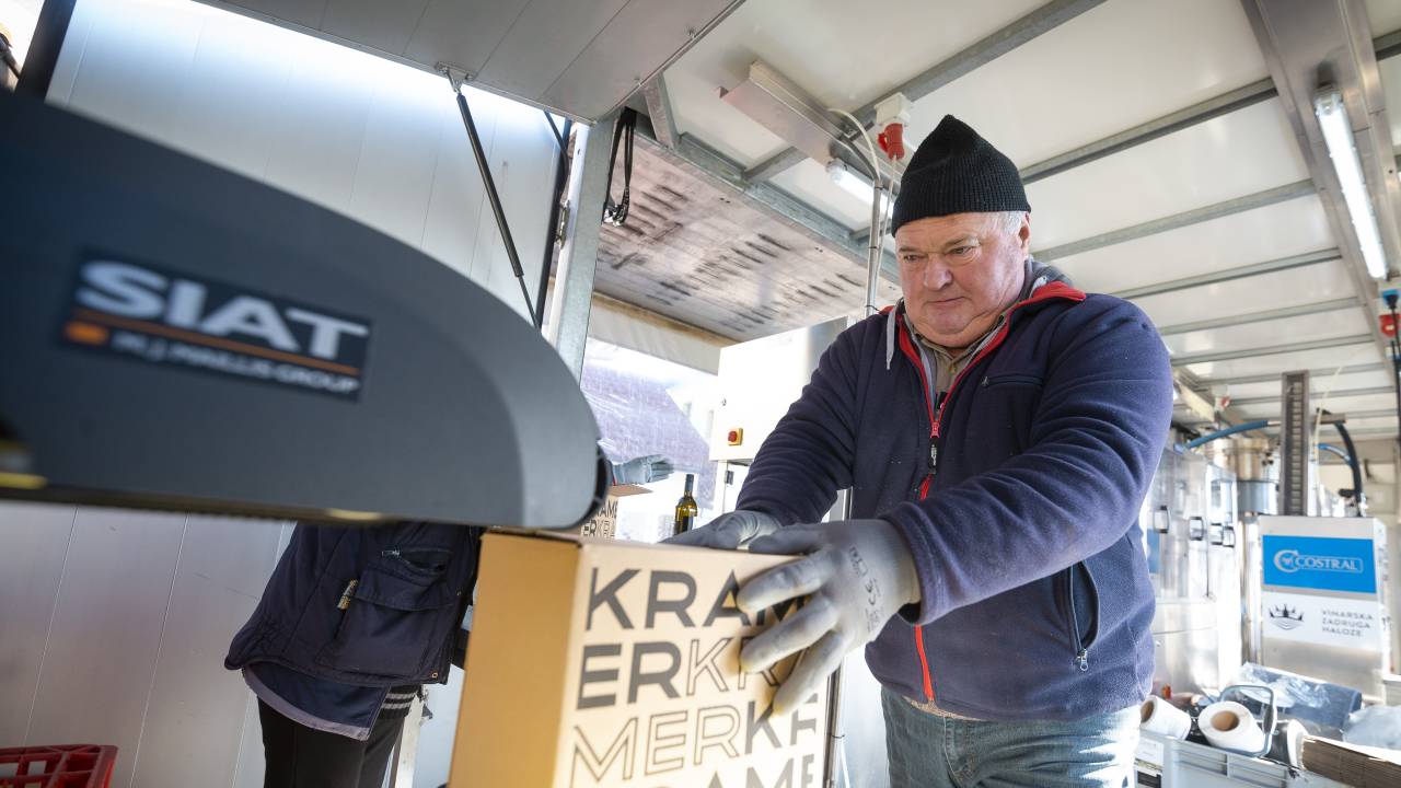 »Prej smo v enem dnevu napolnili tam do 500 steklenic, danes pa jih bomo napolnili 7.000,« ob našem obisku pove vinogradnik Ivan Kramer.