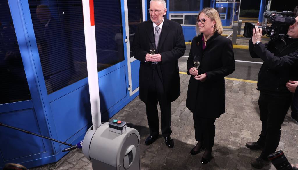 Vstop Hrvaške v schengen sta z dvigom zapornic na mejnem prehodu Obrežje in prižigom zelene luči na semaforju, ki dovoljuje prehod meje, simbolično oznanila pristojna ministra Slovenije in Hrvaške, Sanja Ajanović Hovnik in Davor Božinović.