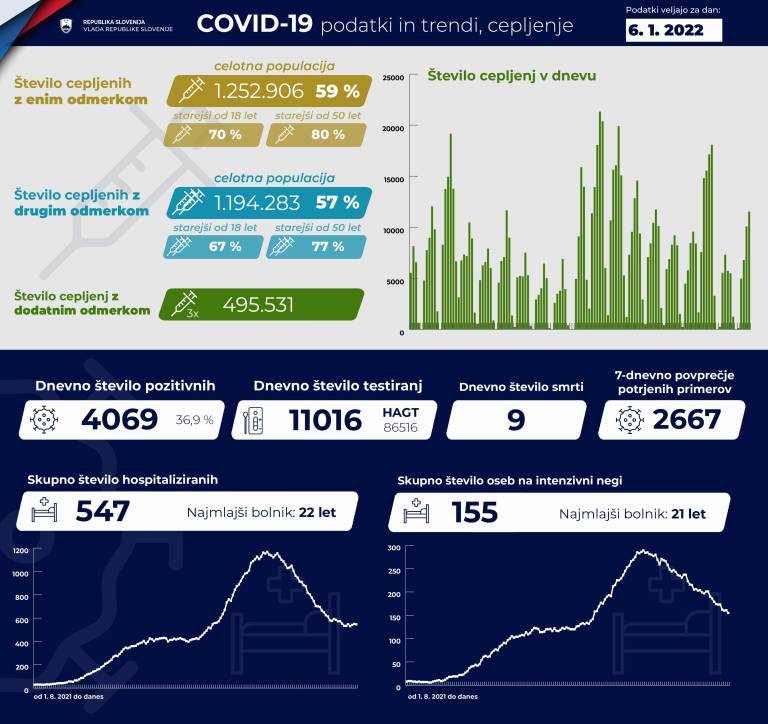 Trenutno je po podatkih Covid-19 Sledilnika v bolnišnicah hospitaliziranih 547 covidnih pacientov, od tega je 155 pacientov na intenzivni negi.