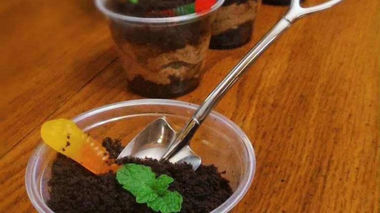 - Korak: Gumijaste črve vtaknite v piškotno »zemljo« in črvivi kozarčki so pripravljeni.
