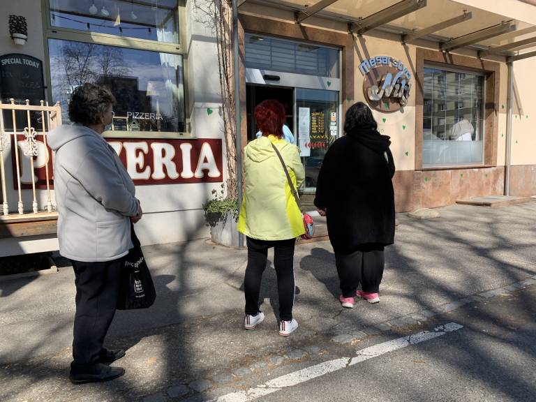 V času pred velikonočnimi prazniki imajo mesarije polne roke dela. Tudi pred vrati prodajalne mesarije Nikl kupci te dni čakajo v vrstah in si ob tem ogledujejo grafite.