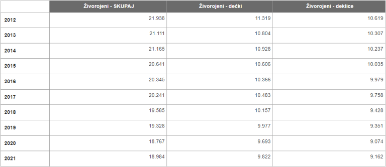 S to težavo pa se ne spopada samo Splošna bolnišnica Murska Sobota, ampak je trend zmanjševanja števila rojstev moč opaziti po celotni Sloveniji. Še leta 2012 se je v naši domovini rodilo 21.938 otrok, samo pet let kasneje, leta 2017 pa le 20.241 otrok, kar je skoraj 2000 rojstev manj.