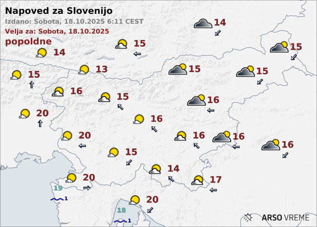 Popoldne bo oblačnost od severovzhoda naraščala, na Štajerskem in v Prekmurju bo zapihal severovzhodni veter.