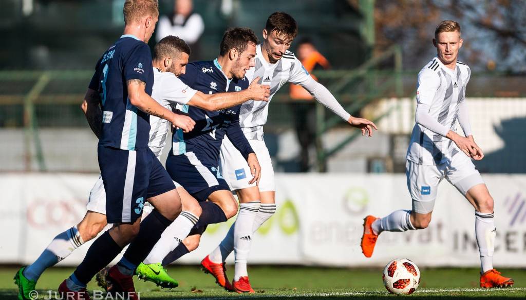 Do prve nevarnejše akcije je prišlo šele v 34. minuti, ko je Rok Sirk prišel do strela, a je vrata ubranil Grega Sorčan. V 43. minuti je nato z desne strani poskusil še Nino Kouter, nakar je goriški vratar žogo odbil v kot. Izvedel ga Klemen Šturm, Sirk pa je žogo z glavo poslal v mrežo.