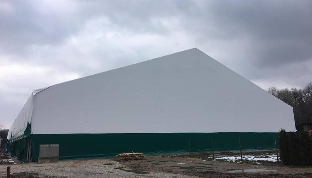 Gradnja teniške hale, ki bo omogočala igranje tenisa skozi vse leto se počasi, a vztrajno bliža koncu. Izvajalcem del jo je nekoliko zagodlo tudi vreme.