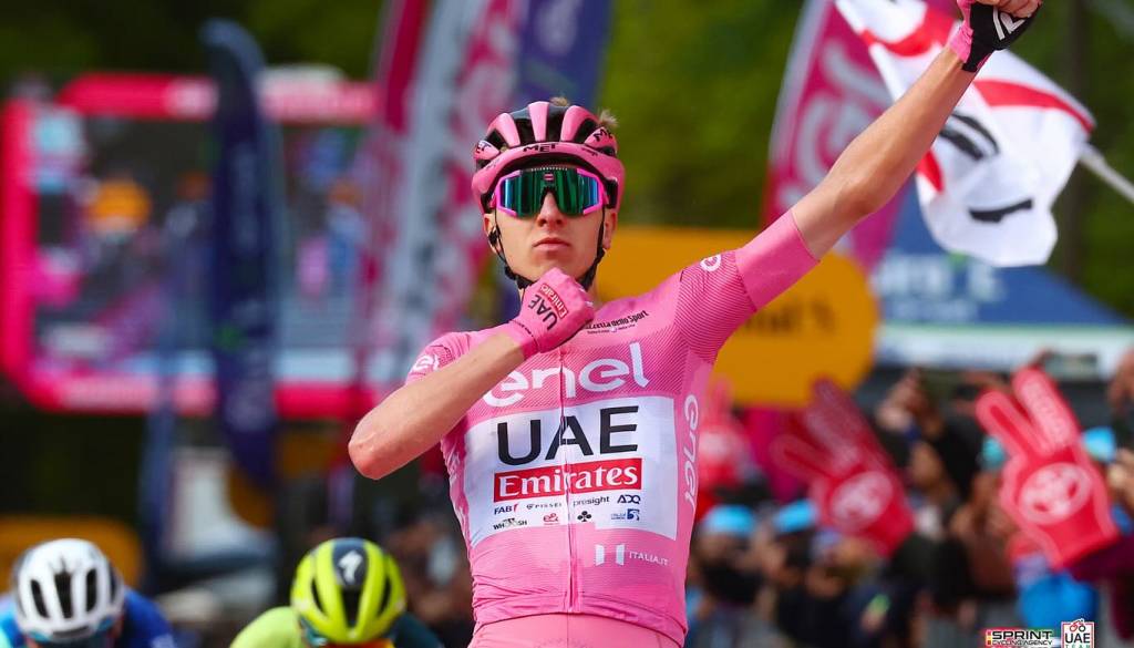 Po dveh zaporednih etapnih zmagah na letošnji izvedbi Dirke po Italiji je Tadej Pogačar, oblečen v rožnato majico vodilnega, v zadnjem kilometru omogočil sprinterjem, da so ujeli ubežnika Jhonatana Narvaeza, sicer edinega tekmovalca, ki je na letošnji dirki poleg našega asa nosil rožnato majico (to mu je uspelo z zmago na prvi etapi).