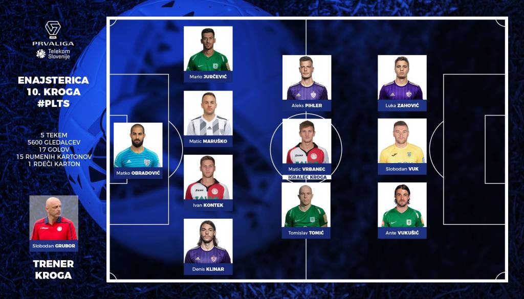 Kot že rečeno, na vratih idealne enajsterice je tokrat Matko Obradović, v obrambni vrsti pa so poleg Matica Maruška še Mario Jurčević iz Olimpije, Ivan Kontek iz Aluminija in Denis Klinar iz Maribora.