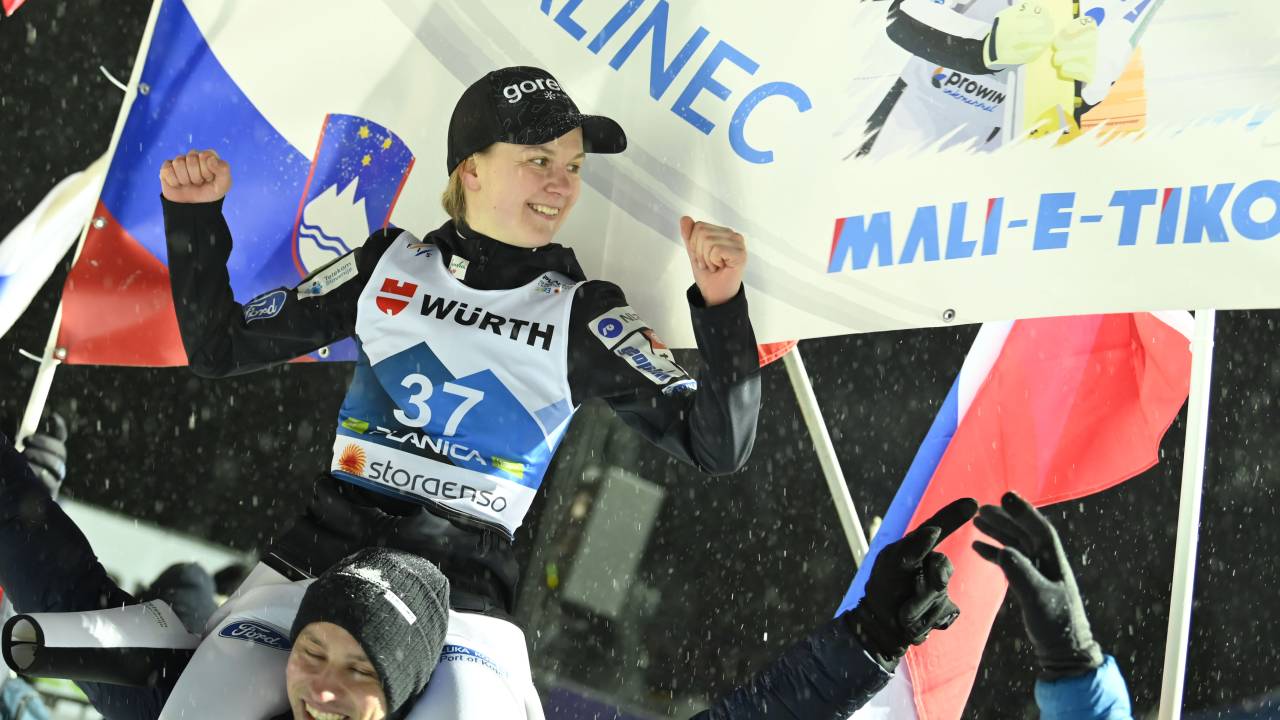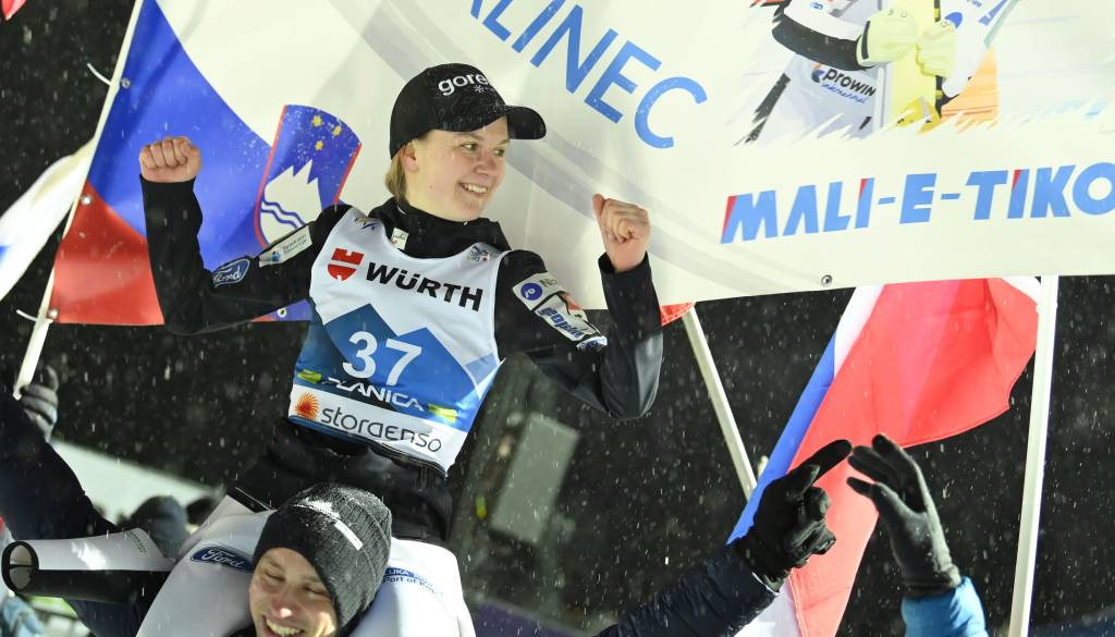 V Lahtiju se bo prihodnji petek sklenila sezona svetovnega pokala za ženske. Avstrijka Eva Pinkelnig, deveta v Vikersundu, je s 1612 točkami že osvojila veliki kristalni globus, na naslednjih dveh mestih sta Althaus (1437) in Klinec (1255).