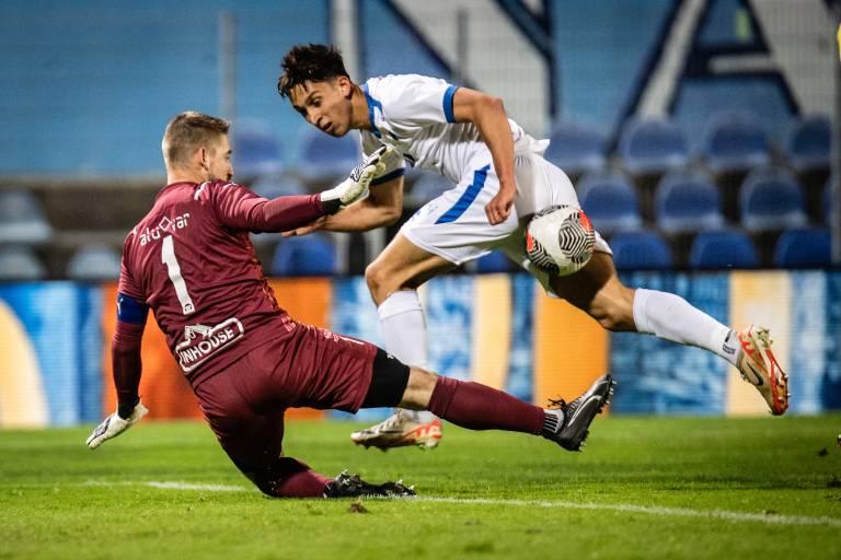 95' Gašper Vodeb je s pravočasno vrnitvijo dobro posredoval ob Luki Marjancu in napadalcu Gorice preprečil zaključni udarec.