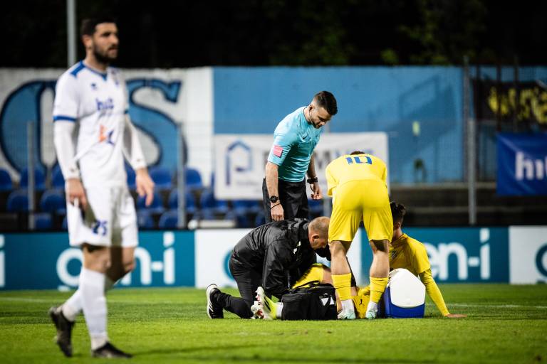 53' MENJAVA! Poškodovanega Gašperja Černeta je zamenjal Jan Bruno Kralj.
