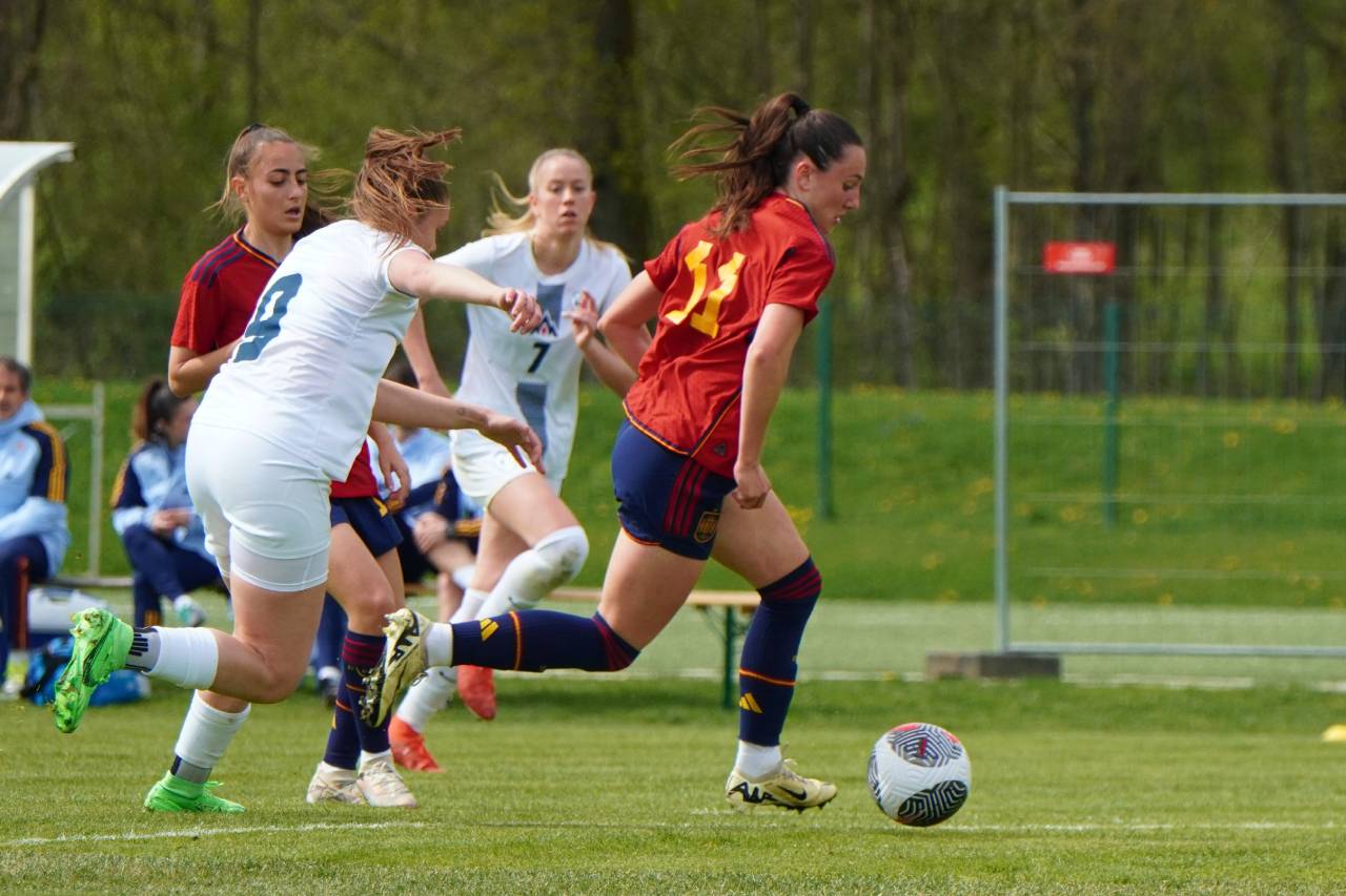 V 48. minuti so Španke zadele tudi z nekaj sreče, saj je Ainhoa Alguacil podajala z desne strani kazenskega prostora, nogo je podstavila Tija Šoštarič Karič, predložek pred vrata pa je v visokem loku preletel vratarko in končal v golu. Zadnji zadetek na tekmi smo videli v 77. minuti, ko se je še tretjič na tekmi med strelke vpisala Jone Amezaga.