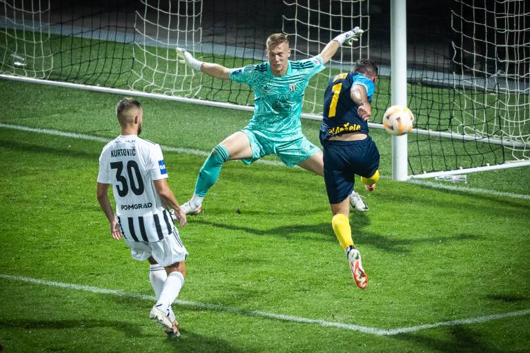 62' PRILOŽNOST! Luka Bobičanec je na robu kazenskega prostora našel Egorja Prutseva, s posredovanjem pa se je izkazal Klemen Mihelak.