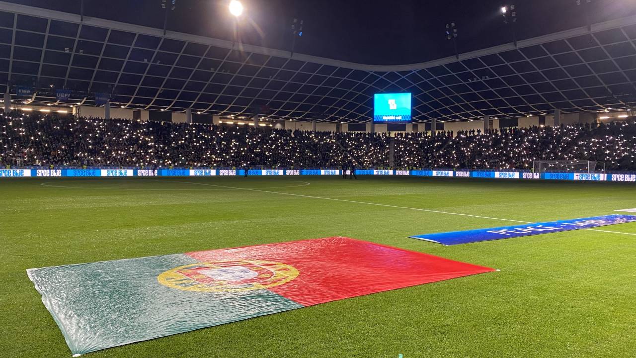 2' Slovenci in Portugalci se danes merijo na povsem novi zelenici, v Stožicah so v minulih tednih prenovili tudi ozvočenje in razsvetljavo, ki zdaj omogoča tudi posebne efekte.