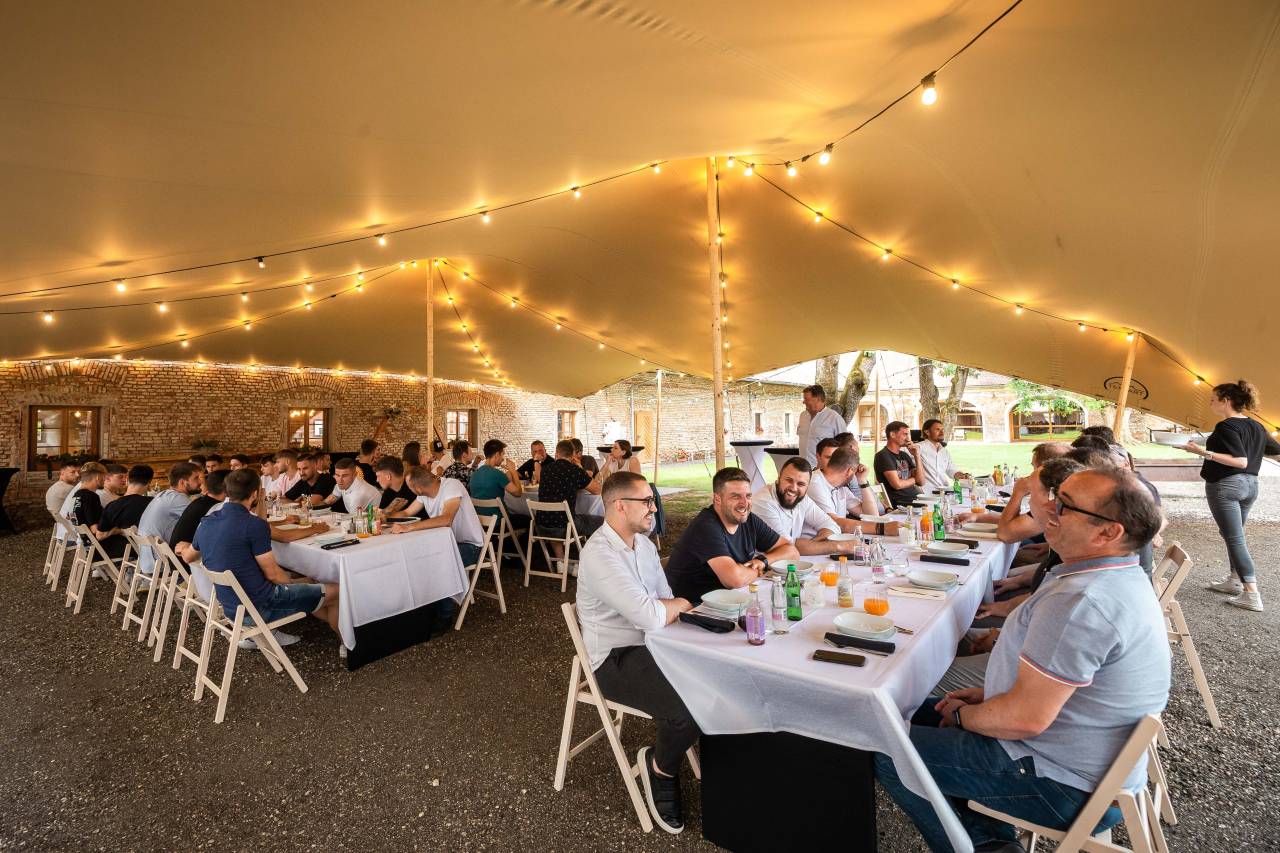 Kot veleva že nekajletna tradicija v času predsednika Roberta Kuzmiča, so se nogometaši Mure pred uvodnim treningom zbrali na večerji v Dvorcu Rakičan.
