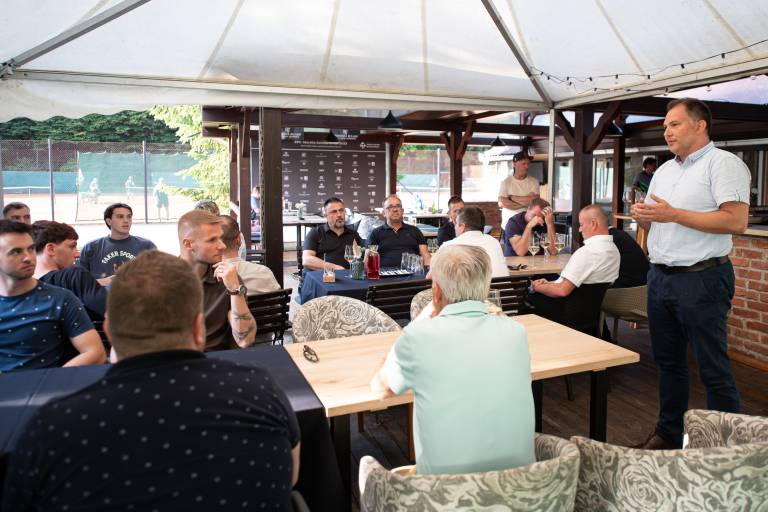 Zbrane je med drugim nagovoril tudi soboški župan Damjan Anželj, strateg črno-belih Dejan Grabić pa je na klubski večerji pozdravil tudi oba poletna novinca, Almina Kurtovića in Gabra Dobrovoljca, ki je danes z Muro sklenil enoinpolletno pogodbo.