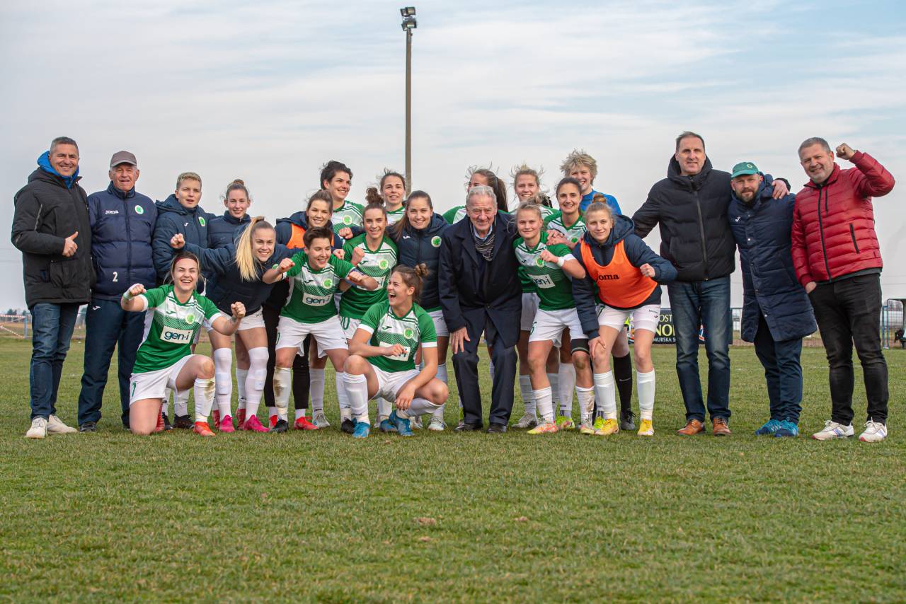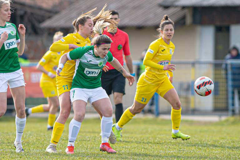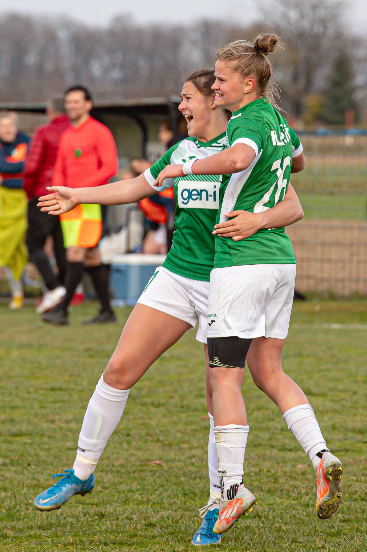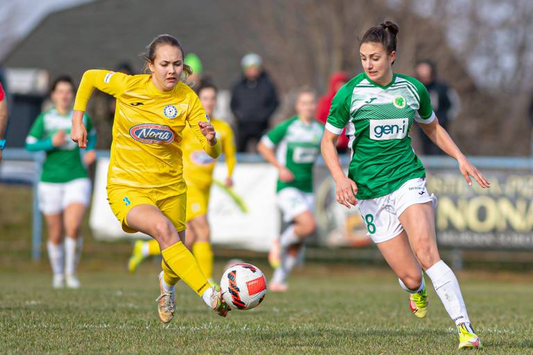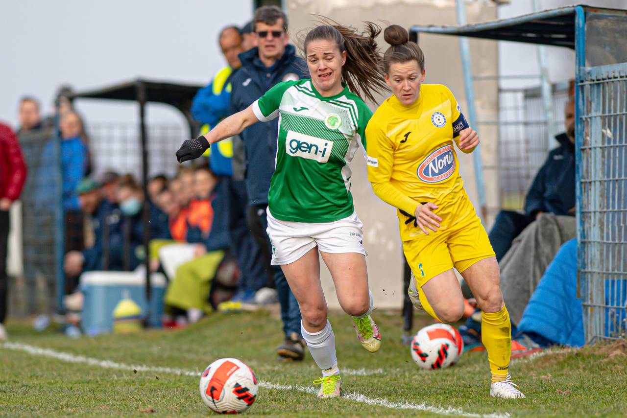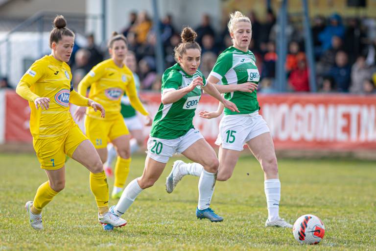 Zeleno-bele so imele v prvem polčasu več od igre, prvič pa so bile blizu zadetka v 20. minuti. Manja Rogan je izvedla prosti strel z desne strani igrišča, Adrijana Mori pa z glavo zatresla prečnik.