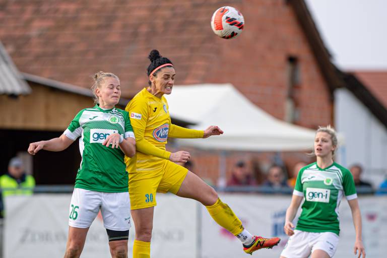 Okvir gola je domačinke reševal tudi v 34. minuti, ko je Urška Bratuša sprožila s 25 metrov in zadela desno vratnico Ive Kocijan, ki je zbrala še nekaj posredovanj.