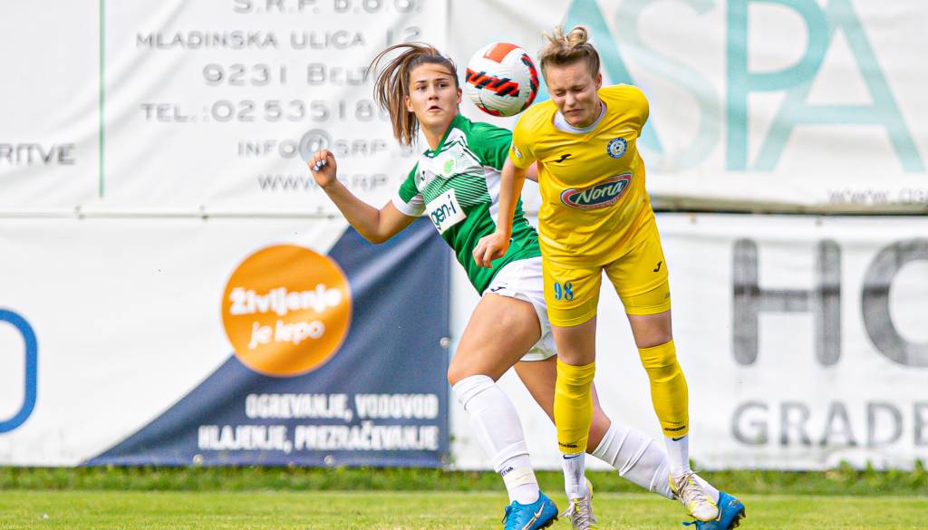 66' PRILOŽNOST! Prva prava priložnost na tekmi, po prostem strelu Lucije Kos je žogo z glavo preusmerila Maja Dimitrijević, Nika Šapek se je izkazala s čudežno obrambo.