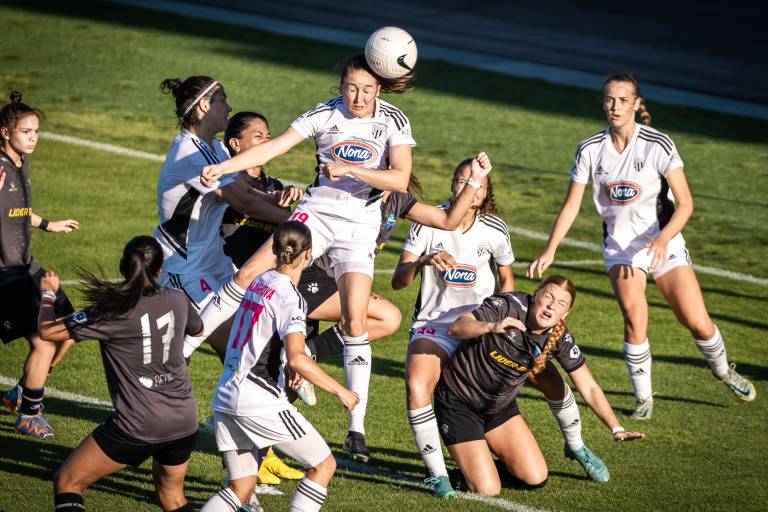 24' PRILOŽNOST! Po prostem strelu Lucije Kos je z glavo poskušala Thalita, ki pa je bila s hrbtom obrnjena proti vratom, zato udarec ni bil nevaren za gol.