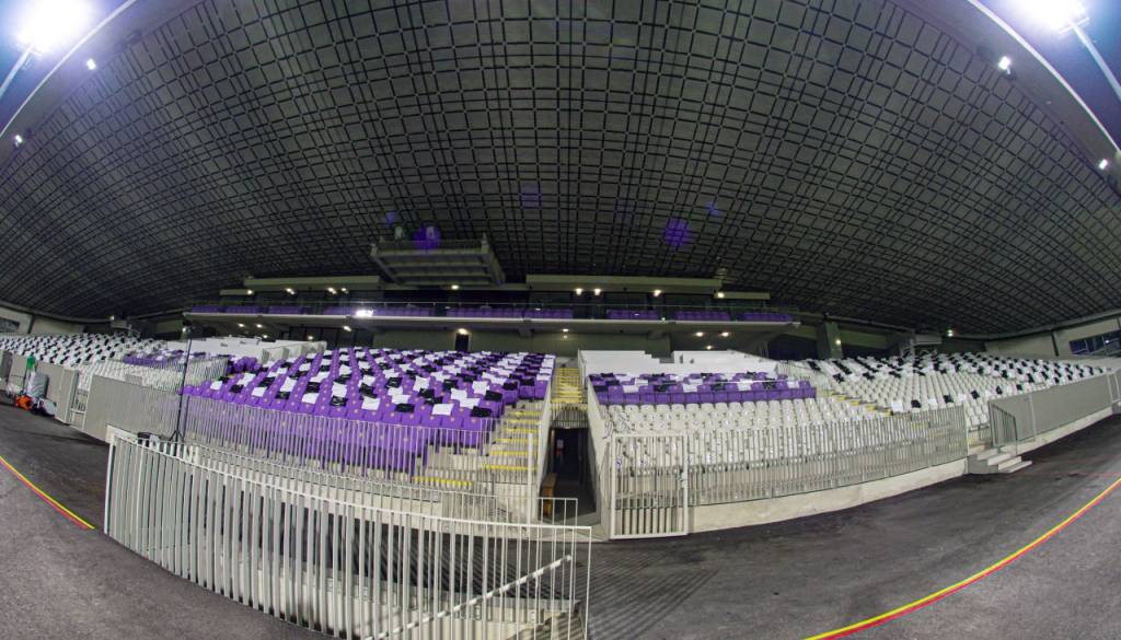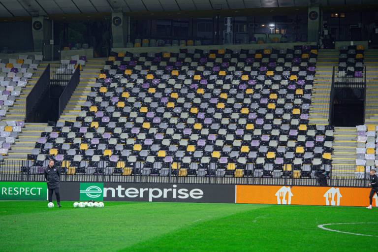 Sedeži na tribunah Ljudskega vrta so črno-belo podobo dobili zaradi zadnjih ukrepov proti širjenju koronavirusa.