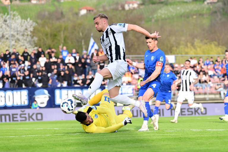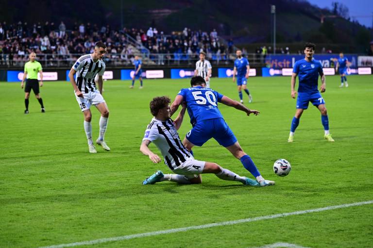 14' Prvič so bili nevarnejši tudi črno-beli. Frano Mlinar je s predložkom na črti kazenskega prostora iskal Daria Vizingerja, pred katerim pa je z glavo izbil Žan Mauricio. Borna Proleta je z razdalje 30 metrov sprožil proti nebranjenim vratom, a se je čuvaj domače mreže pravočasno vrnil pred svoj gol in uspešno posredoval.