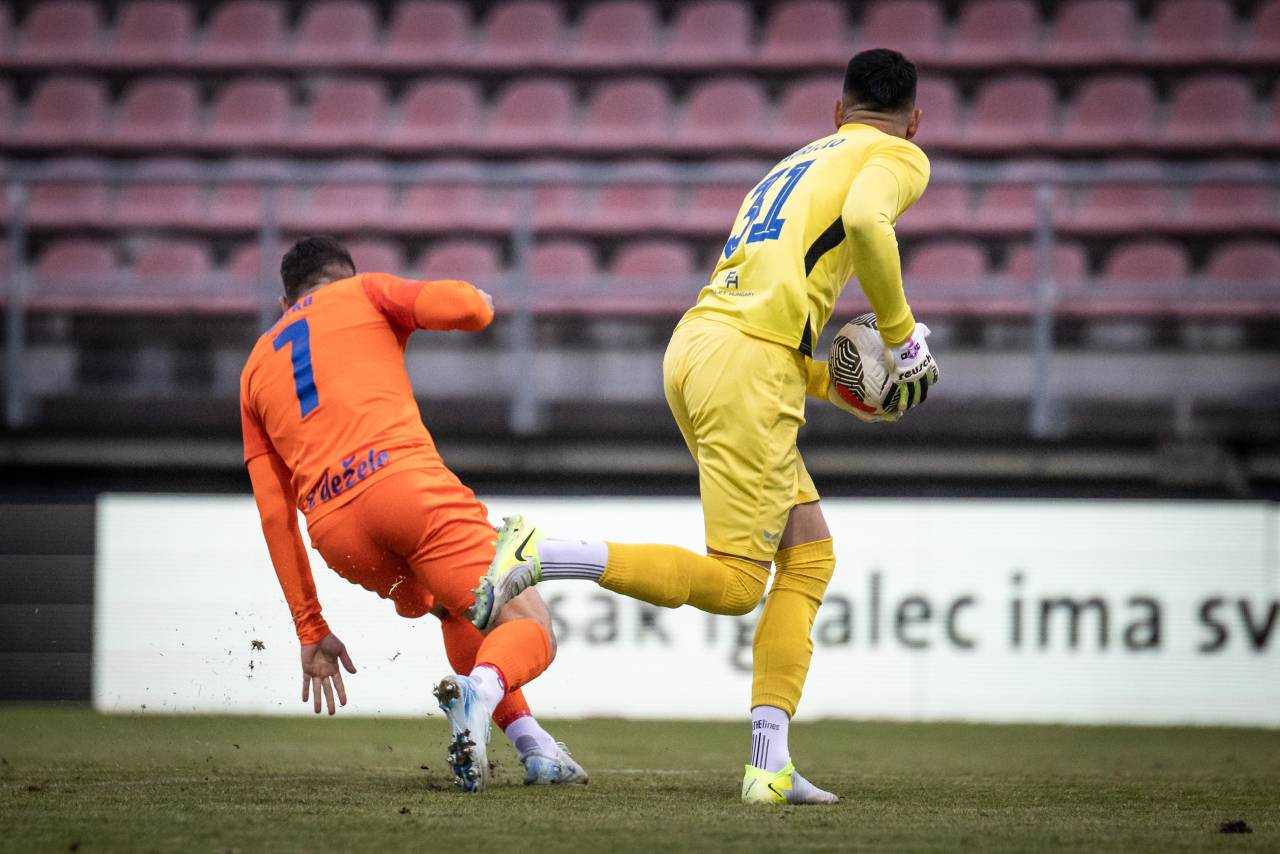 87' PRILOŽNOST! Svit Sešlar se je po podaji v kazenski prostor znašel v odličnem položaju, a se je po strelu s 13 metrov izkazal Žan Mauricio in udarec nekdanjega soigralca izbil v kot.