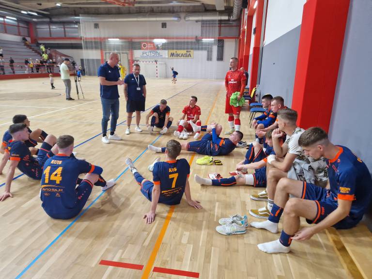 V 12. minuti sta domače ljubitelje futsala razveselila še Marin Mandir in Davor Stanišić, do odmora pa so bili nato znova podjetnejši gostje. Lovro Trdin in Adrian Trstenjaka sta zadela okvir vrat, Alen Mordej pa se je izkazal z nekaj odličnimi obrambami.