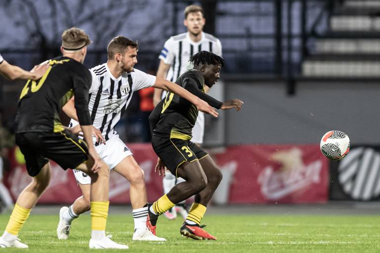 86' PRILOŽNOST! Amadej Maroša je v kazenskem prostoru ob Barnabasu Mosesu prišel do žoge in udarca, a je slabo udaril po žogi in z diagonalnim udarcem ni ogrozil vrat Radomelj.