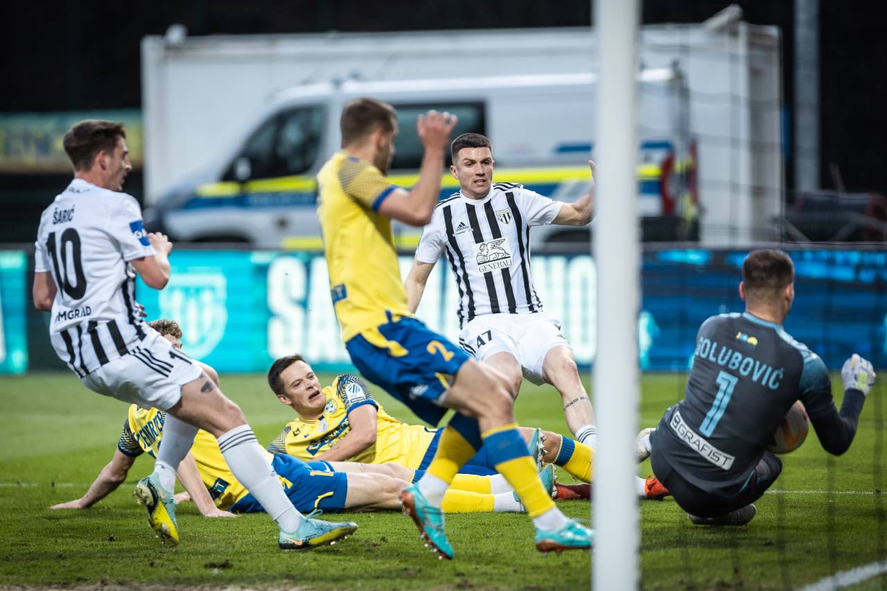 31' PRILOŽNOST! Srđan Kuzmić je poslal predložek na oddaljenejšo vratnico, z glavo pa je streljal Filippo Tripi. Adnan Golubović je bil na pravem mestu.