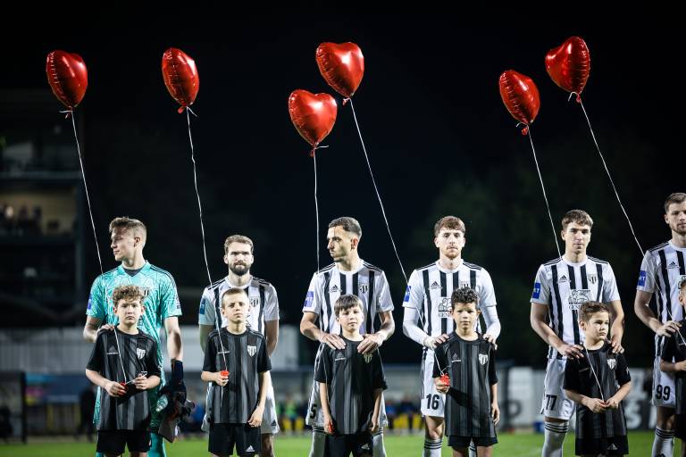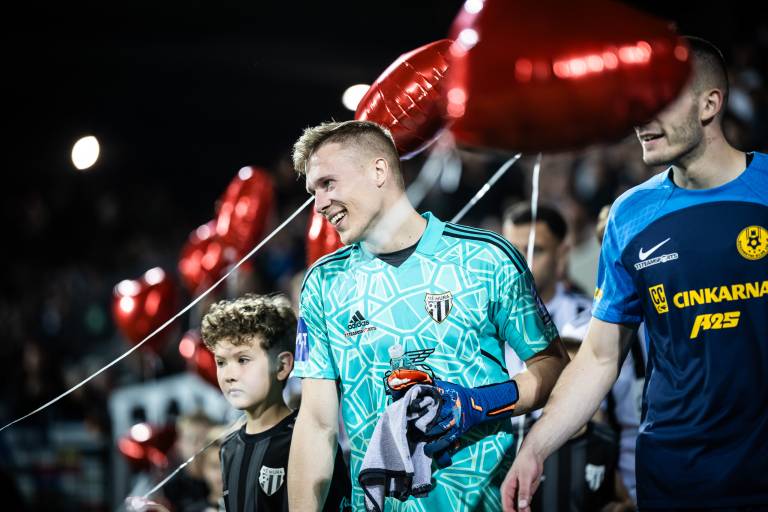 Pred tekmo! Manjša slovesnost pred začetkom tekme. Amadej Maroša je iz rok predsednika kluba Roberta Kuzmiča prejel spominski dres za sto zadetkov v opravi Mure, Maticu Marušku pa je bil predan dres za 350 uradnih nastopov v črno-belem.