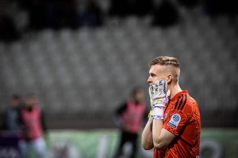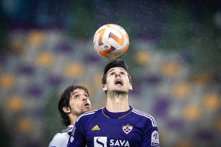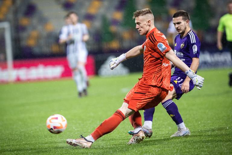 92' PRILOŽNOST! Klemen Mihelak je odbil strel Marina Laušića, ki je z glavo streljal po prostem strelu z leve strani igrišča.