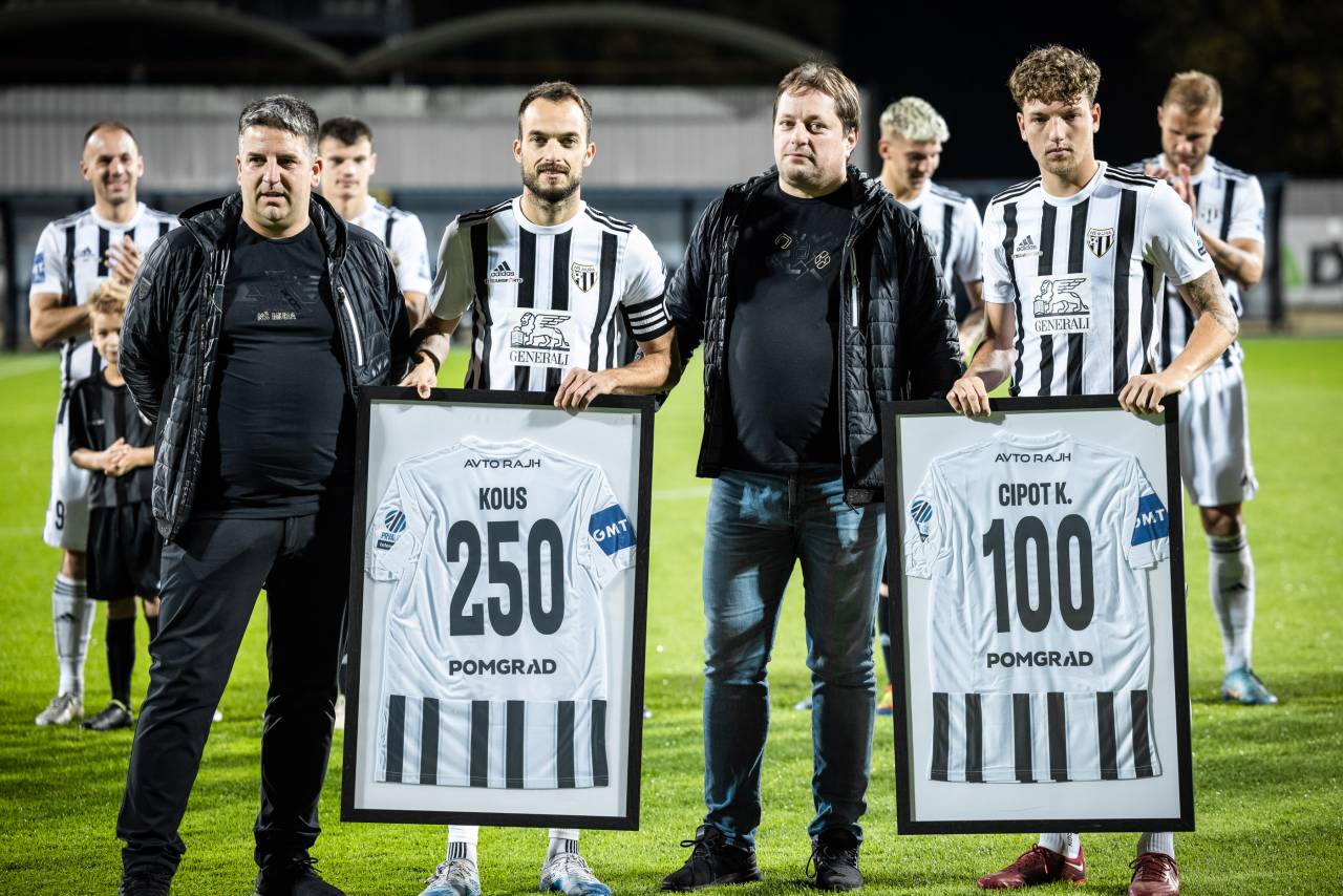 1' Pričetek tekme v Fazaneriji, še pred uvodnim žvižgom pa sta Robert Kuzmič in Denis Rajbar predala spominska dresa Žigi Kousu za 250. in Kaiju Cipotu za stoti nastop v članski ekipi Mure.