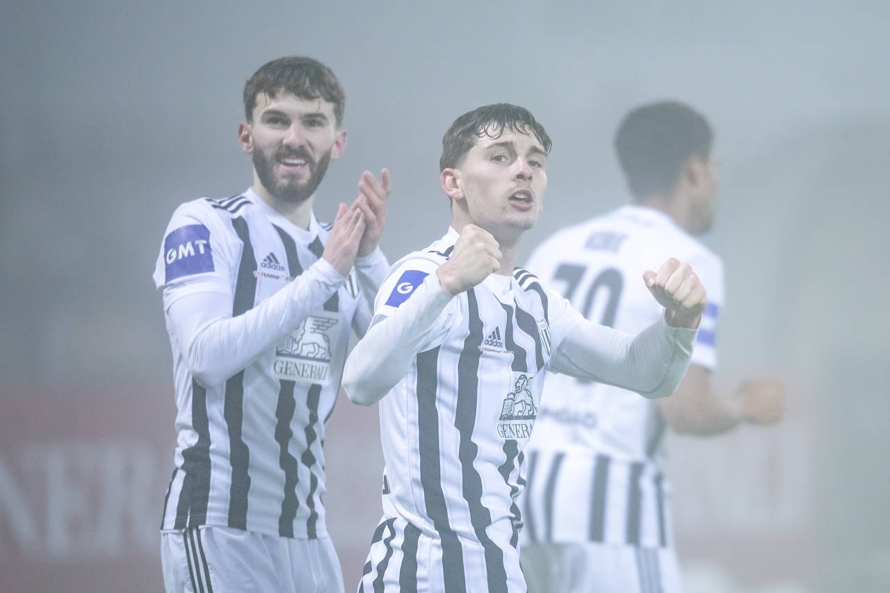 36' GOL! Mura vodi, v megleni Fazaneriji je po podaji Filippa Tripija v polno meril Žan Trontelj, ki je Gašperja Tratnika premagal s strelom med nogama.