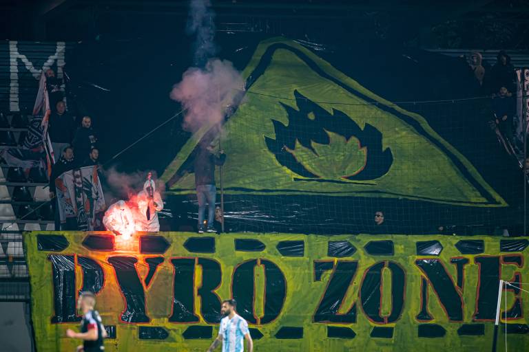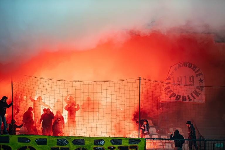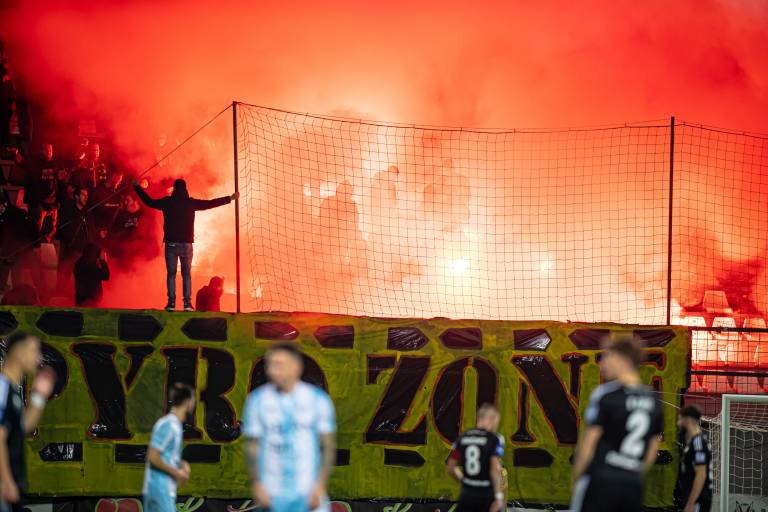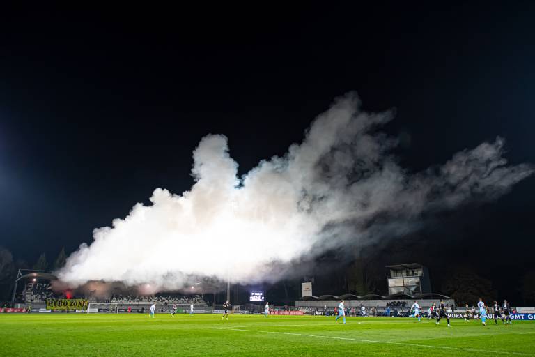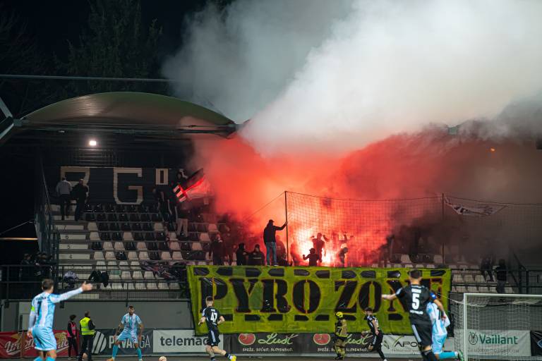 35' Krajša prekinitev zaradi navijaške koreografije Black Gringosov.