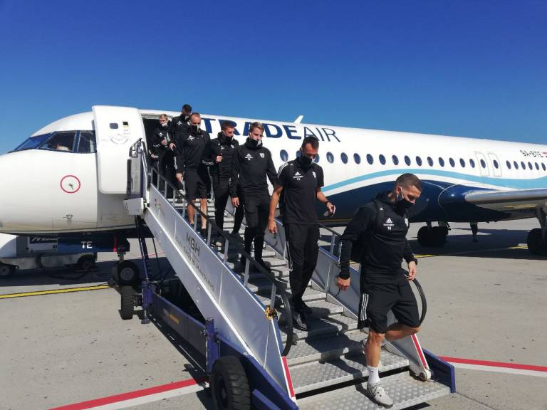 Nogometaši in strokovno vodstvo kluba so se po pristanku že namestili v hotelu, zdaj jih čaka kosilo, nato pa počitek in uradni trening ob 19.30 uri.