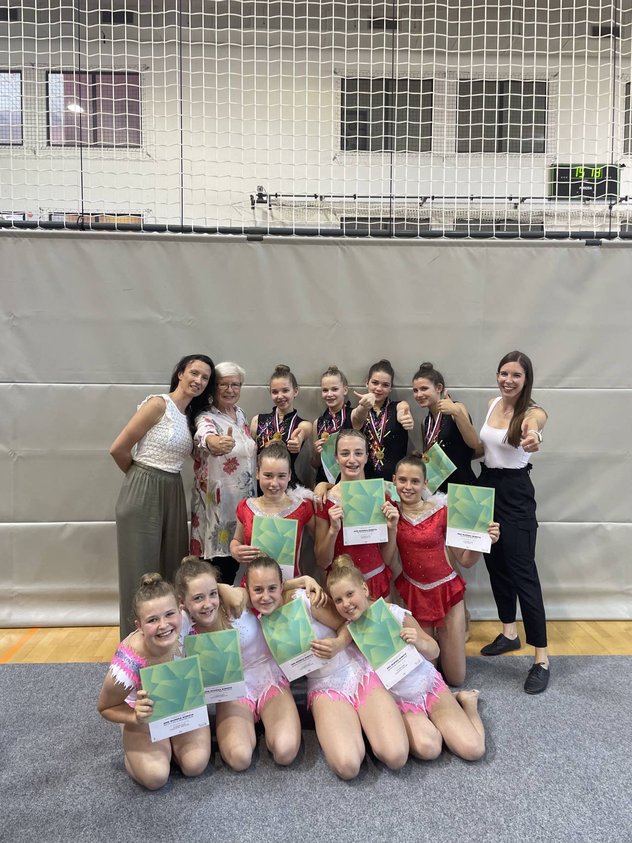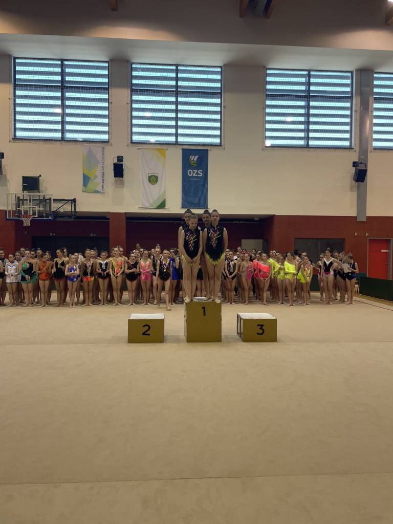 Po prvem mestu na prvenstveni tekmi v Murski Soboti je dekletom Kejši, Maši, Brini in Taji uspelo tudi v drugo odlično nastopiti in spet stopiti na najvišjo stopničko ter osvojiti naslov državnih prvakinj v kategoriji mladink. Zlati medalji iz prvenstvenega tekmovanja se je tako pridružila še ena zlata medalja iz državnega prvenstva v izvedbi kombinirane sestave dva obroča in dve žogi.