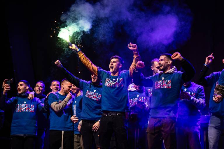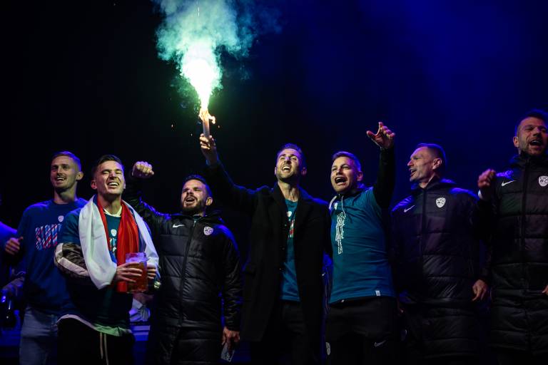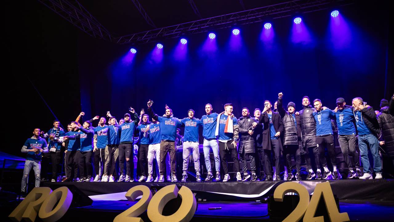 Slavje se bo danes nadaljevalo v središču Ljubljane, na Kongresnem trgu, med 16. in 18. uro, slavilo pa se je že včeraj. Utrinke veselja in radosti po včerajšnji uvrstitvi na evropsko prvenstvo je zbral Jure Banfi.