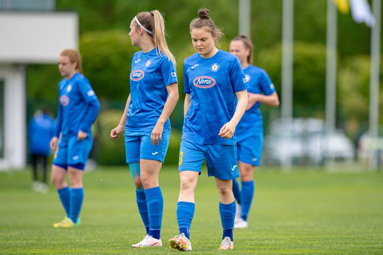 V zadnjih minutah obračuna so na nosilih odnesli Evelino Kos, ki je iz neposredne bližine dobila močan strel v glavo.Konec prvega polčasa
