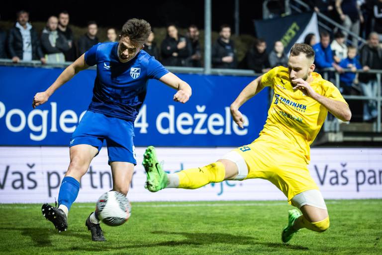 58' Gostje so odigrali obetavno akcijo po levi strani igrišča. Jan Bruno Kralj je podal pred vrata, David Zoltan Gergö pa je žogo izbil preko svojih vrat.