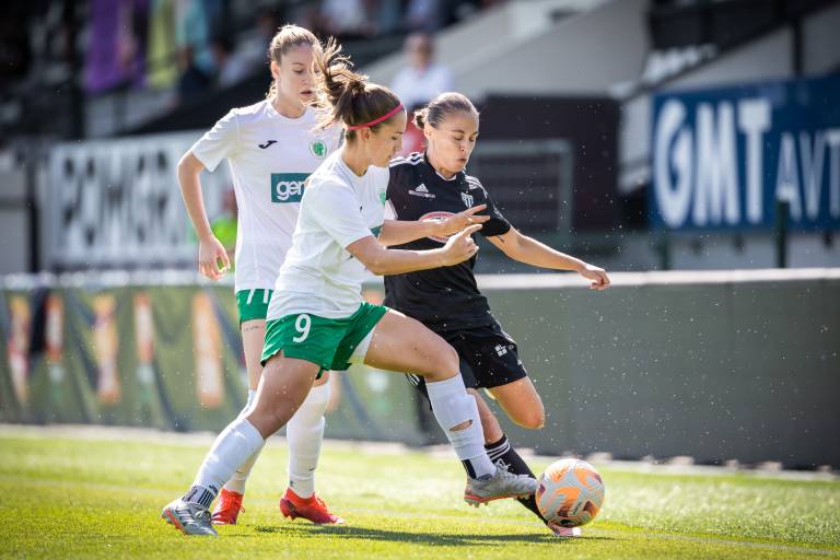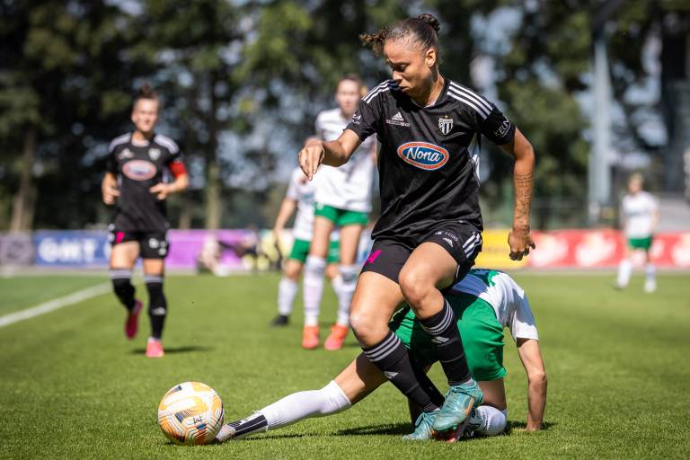 35' PRILOŽNOST! Sobočanke so izpeljale hiter protinapad, Špela Kolbl je bila prehitra za Vanjo Duronjić, a je nato zmanjkalo v zaključku, črno-bele so si priigrale zgolj podajo iz kota.