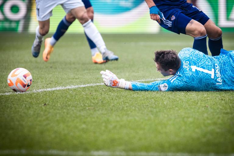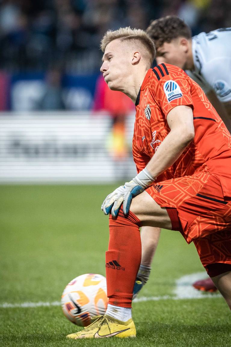 30' PRILOŽNOST! Marko Tolić je podal z desne strani kazenskega prostora, z glavo pa je sprožil Žan Vipotnik in žogo poslal nekaj centimetrov mimo desne vratnice Klemna Mihelaka.