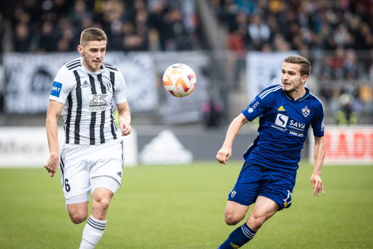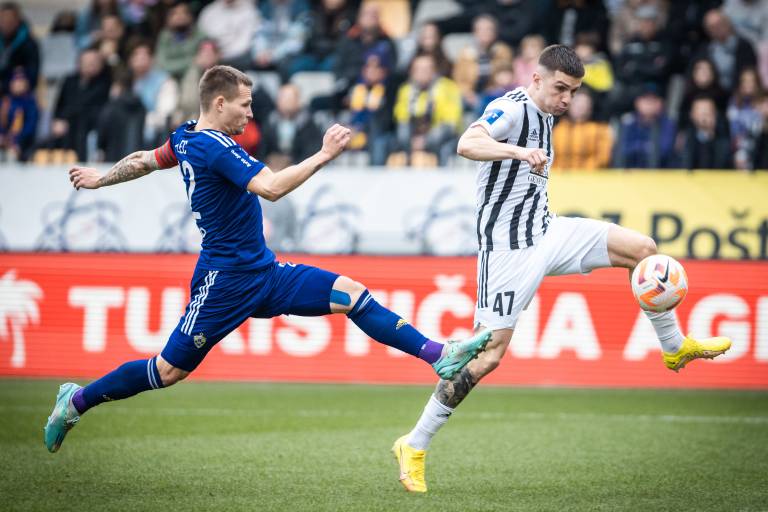 55' PRILOŽNOST! Matic Maruško ni kaznoval nezbranosti domače obrambi. Vezist črno-belih je imel v kazenskem prostoru veliko prostora, a je žogo poslal mimo vrat.