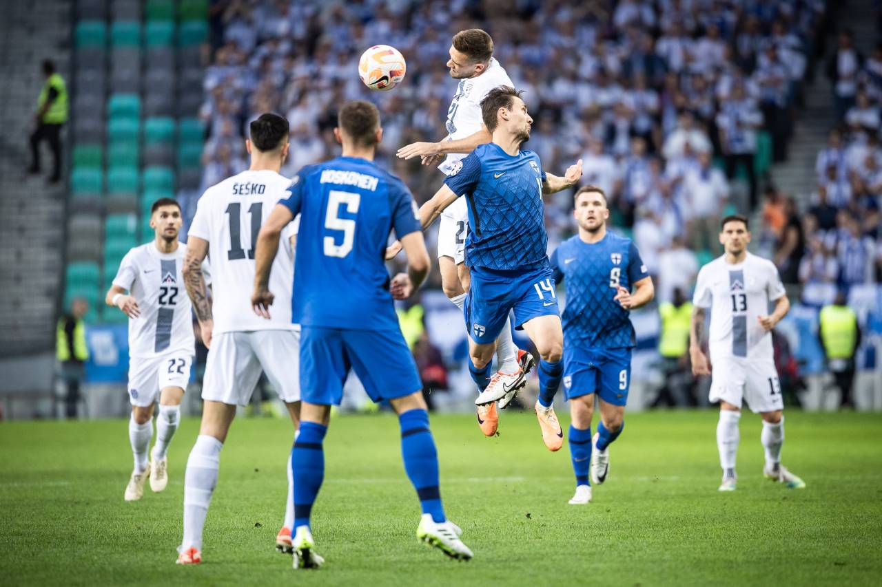Slovenci so odgovorili v 69. minuti, ko pa je Andraž Šporar po podaji Petra Stojanovića strelja v finski blok. Gostje so takoj zatem izpeljali hiter protinapad, po predložku z desne je streljal neovirani Teemu Pukki, vendar meril v Jana Oblaka.