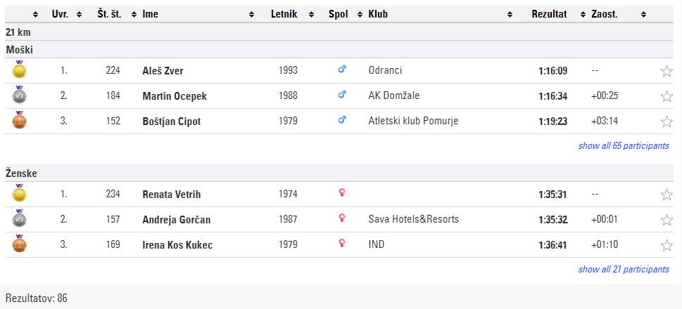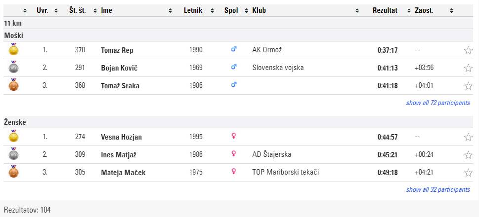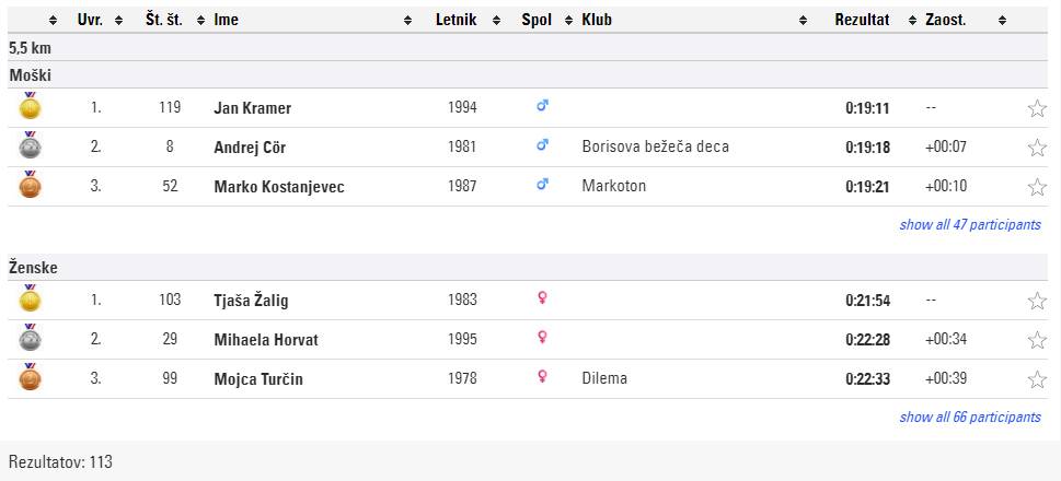 - Rekreativni tek, dolžina 5,5 kilometrov