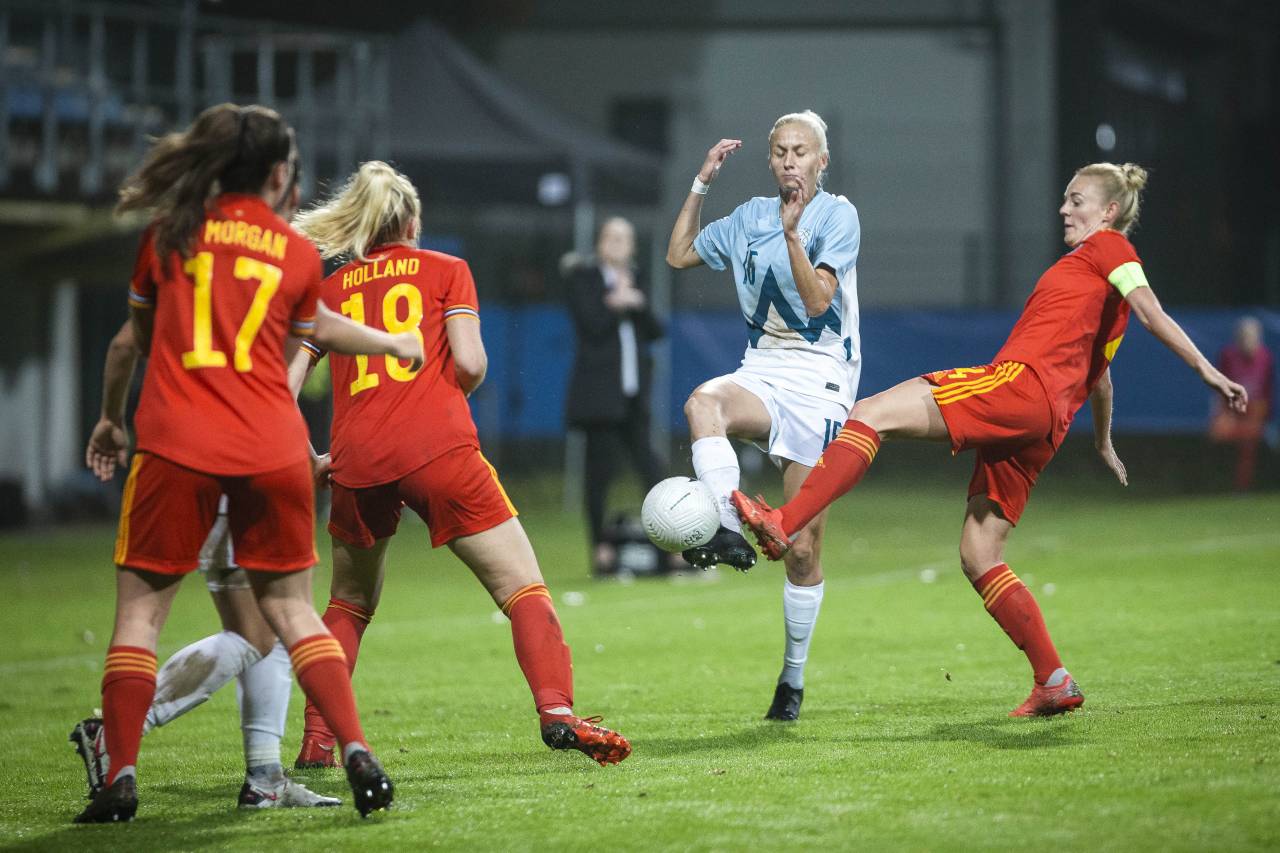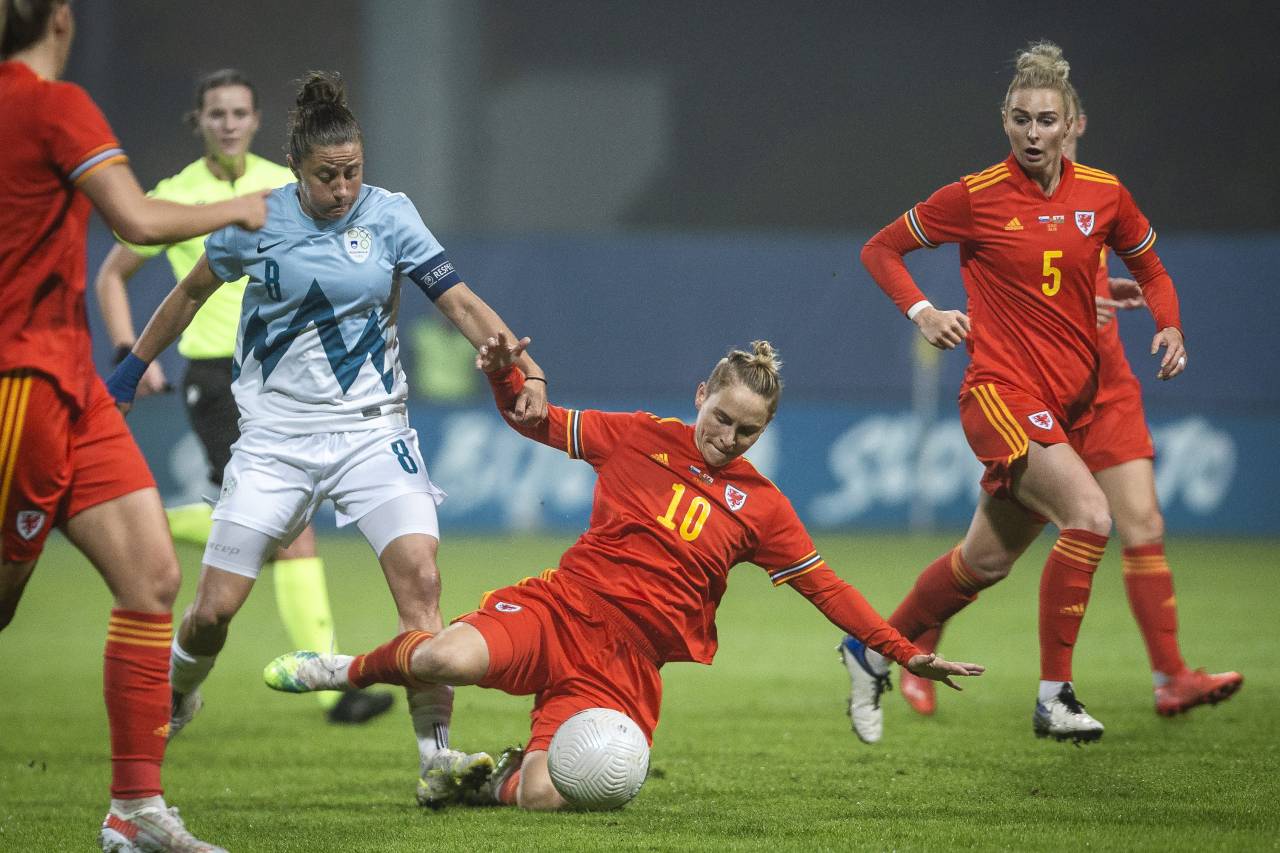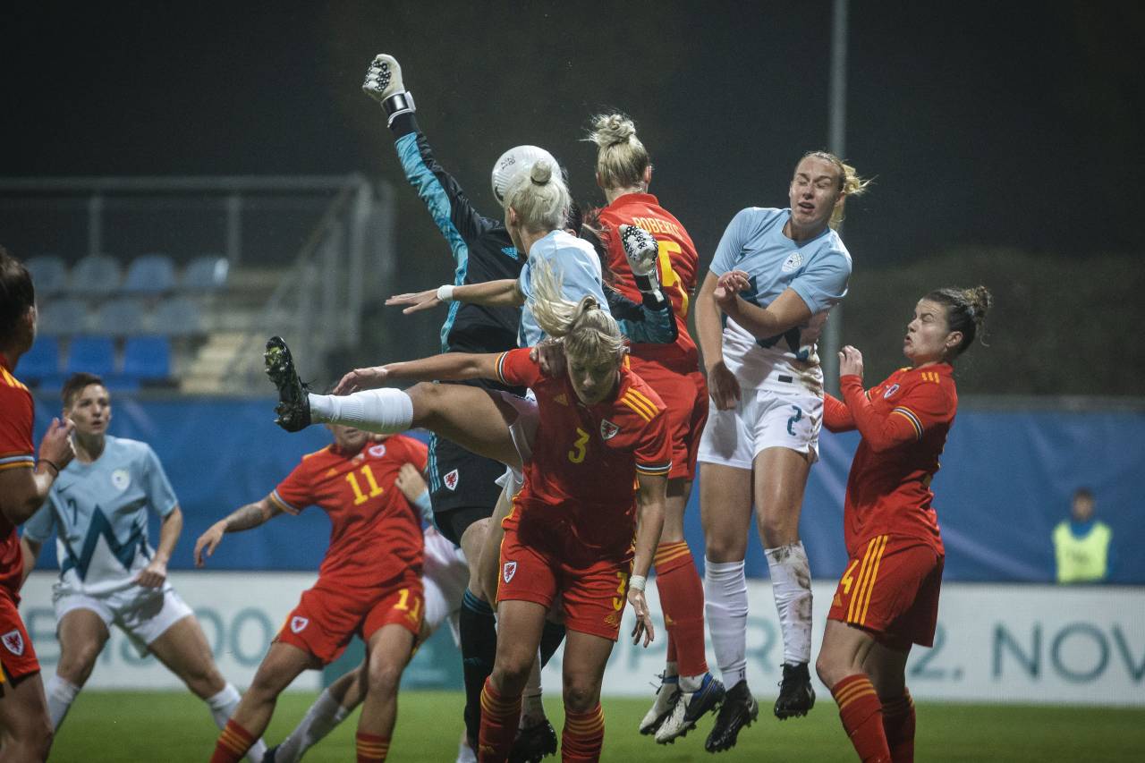 Vodstvo Slovenije je bilo dolgo zgolj minuto in pol, Valižanke so izenačile v 71. minuti. Po prostem strelu Angharad James je bila pred slovenskimi vrati najvišja Kayleigh Green.